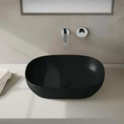 Lavabo Double Vasque à Poser VITRA Outline, 5 Formes, 5 Couleurs Haut De Gamme, Ovale, Noir Mat