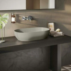 Lavabo Double Vasque à Poser VITRA Outline, 5 Formes, 5 Couleurs Haut De Gamme, Ovale, Taupe Mat