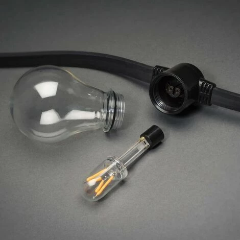Elle dispose de 10 sphères transparentes en acrylique – chacune avec une source de lumière PowerLED double blanc 2200 K rĂ©glable et remplaçable. Les ampoules lumineuses ont une puissance lumineuse Ă©levĂ©e pendant toute leur durĂ©e de vie et sont variables en 4 positions (25 % -50 % -75 % -100 %). La distance entre les sources lumineuses est de 50 cm. Les ampoules sont en plastique et ne sont donc pas cassables. Le câble de connexion jusqu’Ă la première source de lumière est Ă©galement de 10 mètres de long, donc il peut presque toujours ĂŞtre connectĂ© Ă une prise de courant sans rallonge.