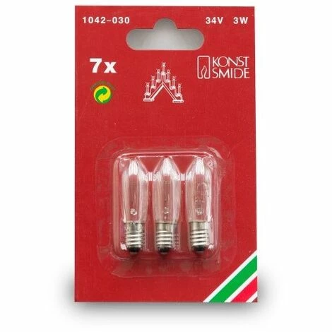Konstsmide Spare 7-9 Welcome Light Bulb. Type de cache lampe: E10, Puissance de l’ampoule incluse: 3 W. Couleur: Transparent. Poids: 16 g
