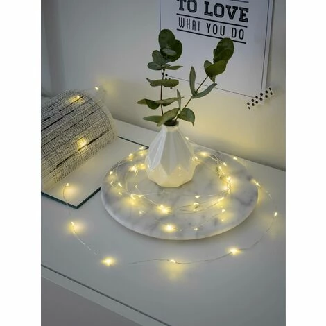 Minuteur 6H · 40 diodes blanches chaudes · alimentation par piles (4x AA hors) · intérieur · fil argenté.