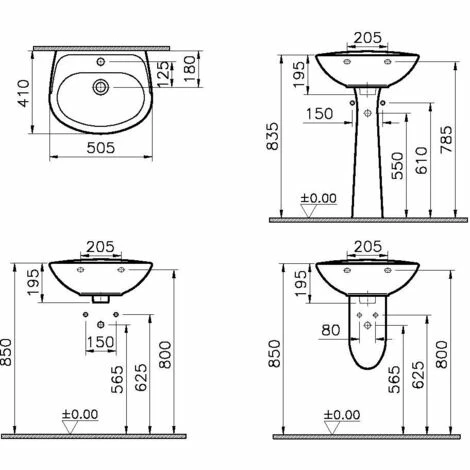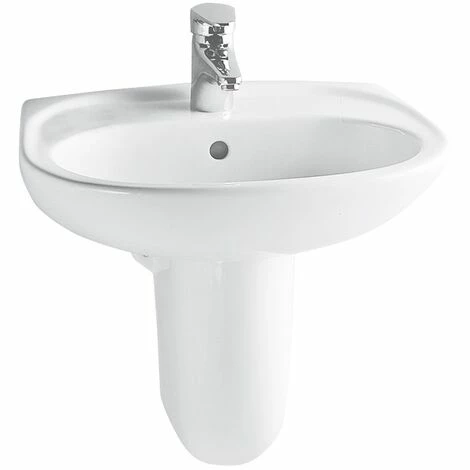 Lavabo de salle de bains avec 1 trou central pour robinet et trop-plein.