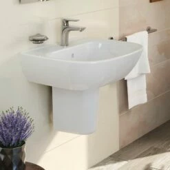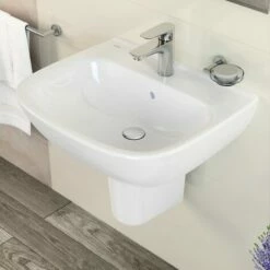 La collection VitrA Zentrum est une ligne composĂ©e de lavabos, sanitaires, WC et bidets caractĂ©risĂ©s par un design simple, pratique et fonctionnel capable de s’intĂ©grer dans tout type de mobilier de salle de bain, du classique au plus actuel. Ce modèle de lavabo pour robinetterie monotrou est l’une des meilleures solutions pour les petites et grandes salles de bains. InstallĂ© au ras du mur, l’Ă©vier permet de profiter de l’espace en dessous pour inclure des armoires et autres accessoires d’ameublement et, selon le type d’installation, il peut ĂŞtre combinĂ© avec une colonne ou une demi-colonne de la mĂŞme sĂ©rie qui peuvent ĂŞtre achetĂ©s sĂ©parĂ©ment. La grande baignoire de 60 cm est en cĂ©ramique sanitaire avec une finition blanche brillante de qualitĂ© exceptionnelle et est Ă©quipĂ©e d’un trop-plein pour Ă©vacuer l’excès d’eau.