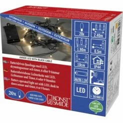 Cette guirlande lumineuse LED alimentĂ©e par piles pour l’extĂ©rieur de Konstsmide est non seulement un point fort pour toute dĂ©coration festive, mais Ă©galement un petit miracle technique. EquipĂ© d’un interrupteur, d’un minuteur 6 h, de 8 fonctions et d’une fonction mĂ©moire, il offre tout le confort que vous souhaitez pour une dĂ©coration extĂ©rieure de qualitĂ©. Le compartiment Ă piles s’ouvre et se ferme facilement, le tournevis n’a pas besoin d’ĂŞtre utilisĂ©. Profitez d’une pĂ©riode de l’Avent Ă©tincelante, de nouveau tous les ans, car ce produit de qualitĂ© durable de Konstsmide vous fera plaisir et vous fera plaisir. Depuis plus de 40 ans, la sociĂ©tĂ© Konstsmide fabrique des dĂ©corations lumineuses de qualitĂ© pour l’intĂ©rieur et l’extĂ©rieur , depuis 1999, la marque est pionnière dans le domaine des solutions LED innovantes, durables et sĂ©curisĂ©es. Ce texte a Ă©tĂ© traduit par une machine.