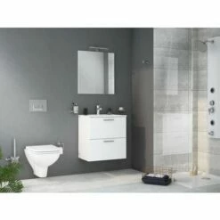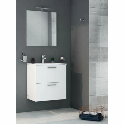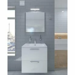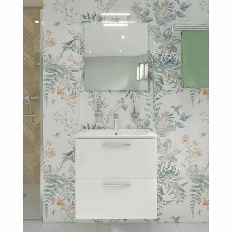 Caractéristiques du Meuble 59x61x39,5 cm pour salle de bain avec miroir, lavabo et éclairage LED, Blanc brillant, Vitra Mia (MIASET60B) :
