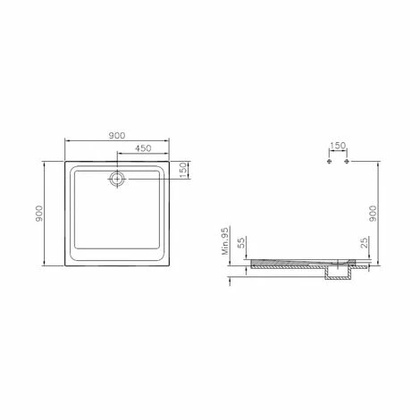 céramique sanitaire, bonde Ø 90 mm, sans système d’écoulement.